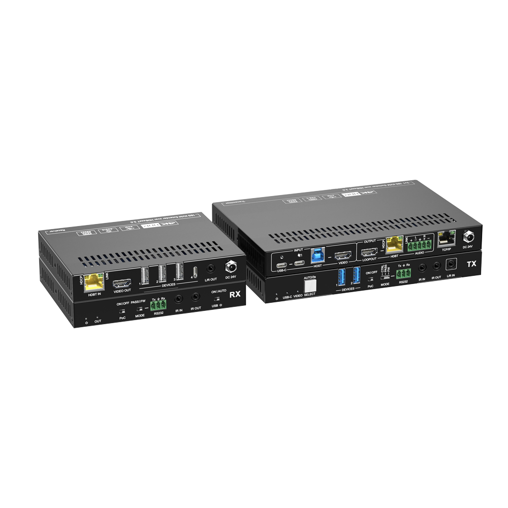 The host port contains one Type-C for PC or laptop connect; The device port with USB power management contains four USB ports, applications include extending conferencing cameras, video capture devices, and audio devices for boardrooms and conference rooms. The extender also supports two-way 24V PoC power supply.