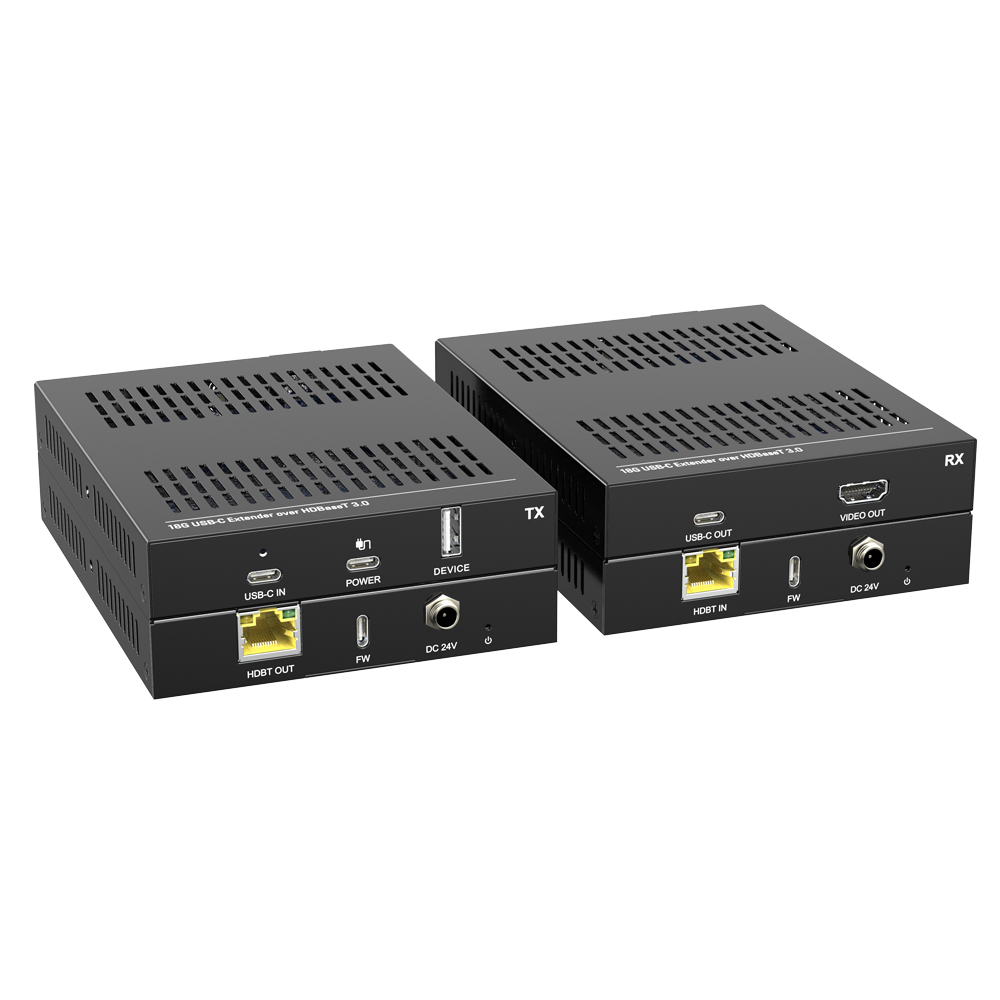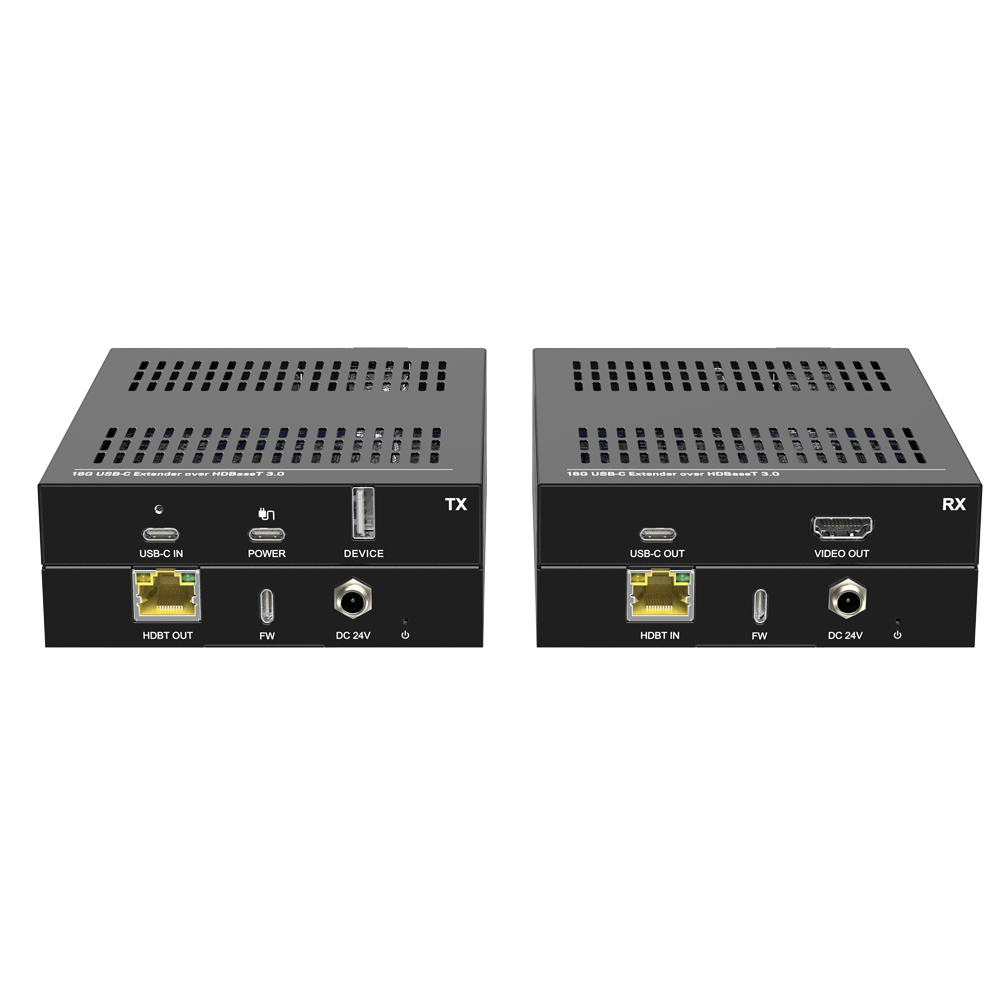 The host port contains one Type-C for PC or laptop connect; The device port with USB power management contains four USB ports, applications include extending conferencing cameras, video capture devices, and audio devices for boardrooms and conference rooms. The extender also supports two-way 24V PoC power supply.