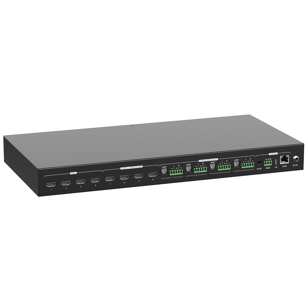 professional 4x4 HDMI 18Gbps Matrix Switcher with Audio Matrix. It includes 4